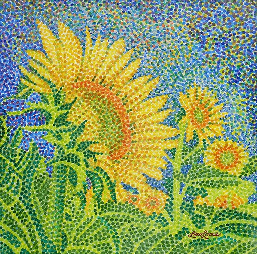 As an artist who turns to beauty in the world for inspiration, hope and faith go into my work in the form of triumphant colors, shapes and perspective. My colorful dots are layered reminders that calmness and chaos are mixed together in life. They are reminders that color, light and joy can heal one’s soul. The simplest image can be an explosion of positive energy.